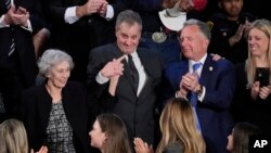 Слушатели приветствовали овациями американца Марка Фогеля, ранее освобожденного из российской тюрьмы в рамках обмена, и его мать. Они присутствовали в зале во время речи Трампа.