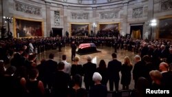 Лидеры обеих партий Конгресса собрались здесь, чтобы почтить память военного героя и одного из ветеранов американской политики, который боролся за американские идеалы свободы и права человека.
