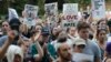 В субботу участники акции протеста забросали полицию кирпичами и бутылками с зажигательной смесью